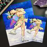 This is a print of a watercolor piece I painted inspired by Alysa Liu.